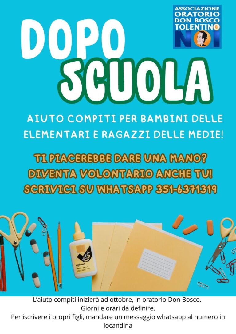 E' possibile venire in oratorio ad aiutare nell'aiuto compiti. Se sei disponibile contattaci al numero Whatsapp. I ragazzi di 3°, 4° e 5° superiore possono ricevere i crediti formativi.